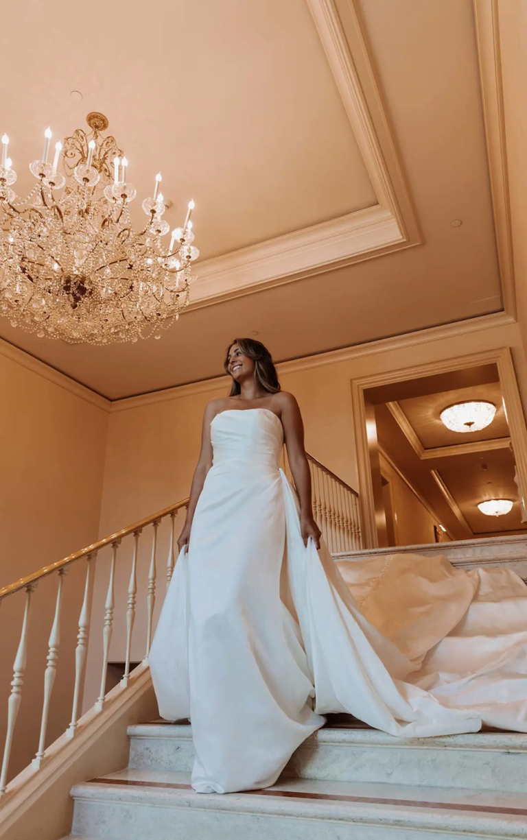 When it comes to old money wedding dresses, classic silhouettes are your best friends. Here are a few stunning options you’ll find in our collection: